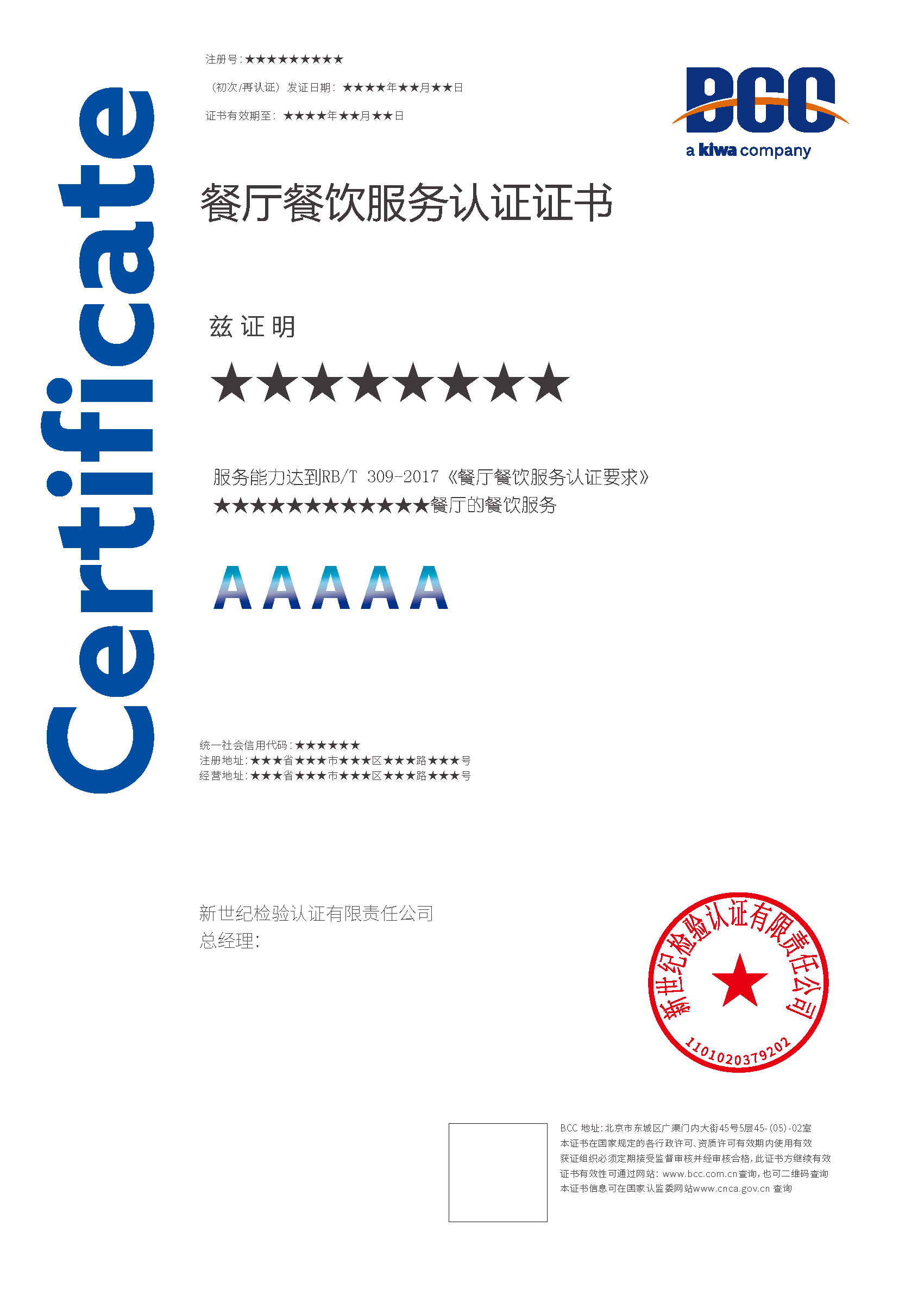 餐廳餐飲服務(wù)認證的證書有效期為三年,每年BCC會對獲證組織進行必要的監(jiān)督審查,證書到期前還要實施再認證審查。