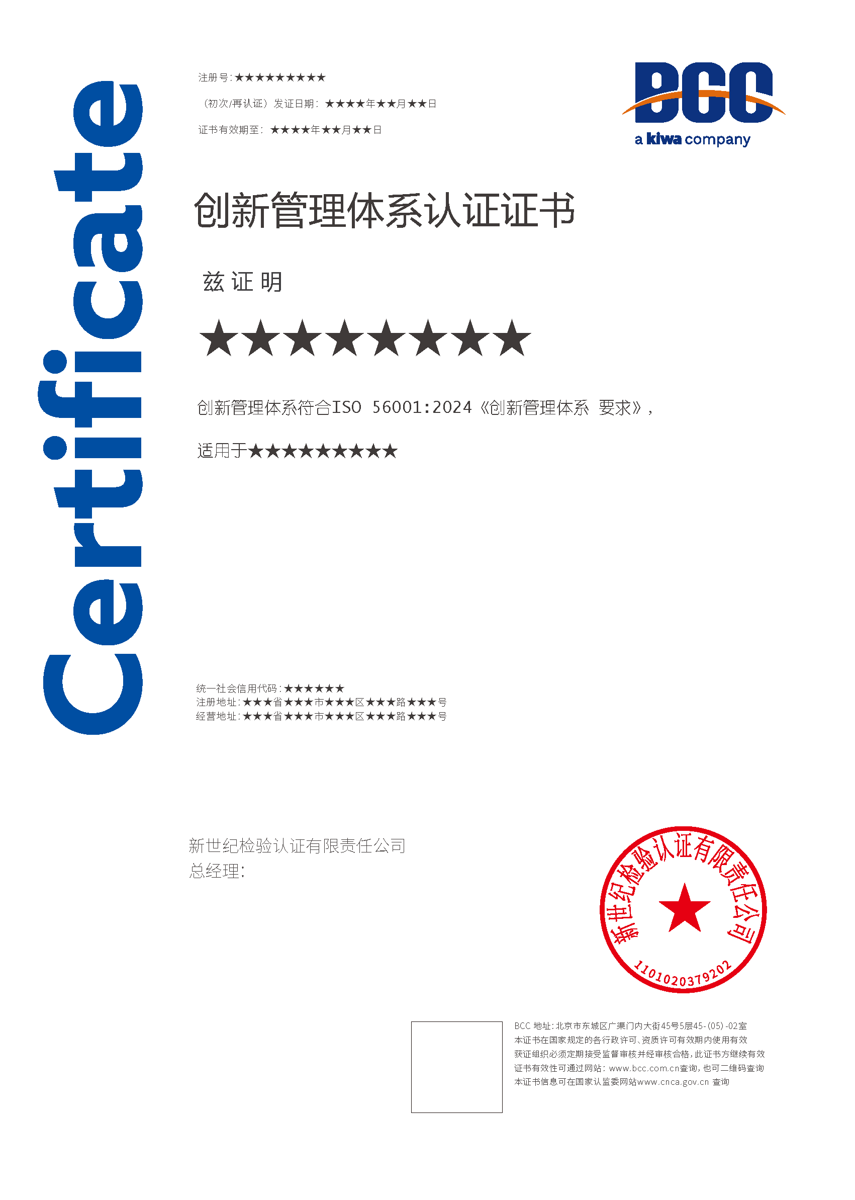 本頁(yè)涉及的認(rèn)證服務(wù)中均有對(duì)應(yīng)的《認(rèn)證實(shí)施規(guī)則》,BCC擁有其最終解釋權(quán)。任何組織及個(gè)人未經(jīng)BCC許可,不得以任何形式全部或部分使用(法律要求除外)認(rèn)證相關(guān)信息。如需獲取相關(guān)實(shí)施規(guī)則請(qǐng)用以下方式聯(lián)系獲取:電話:010-58579316 郵箱:fwjs@kiwa.cn