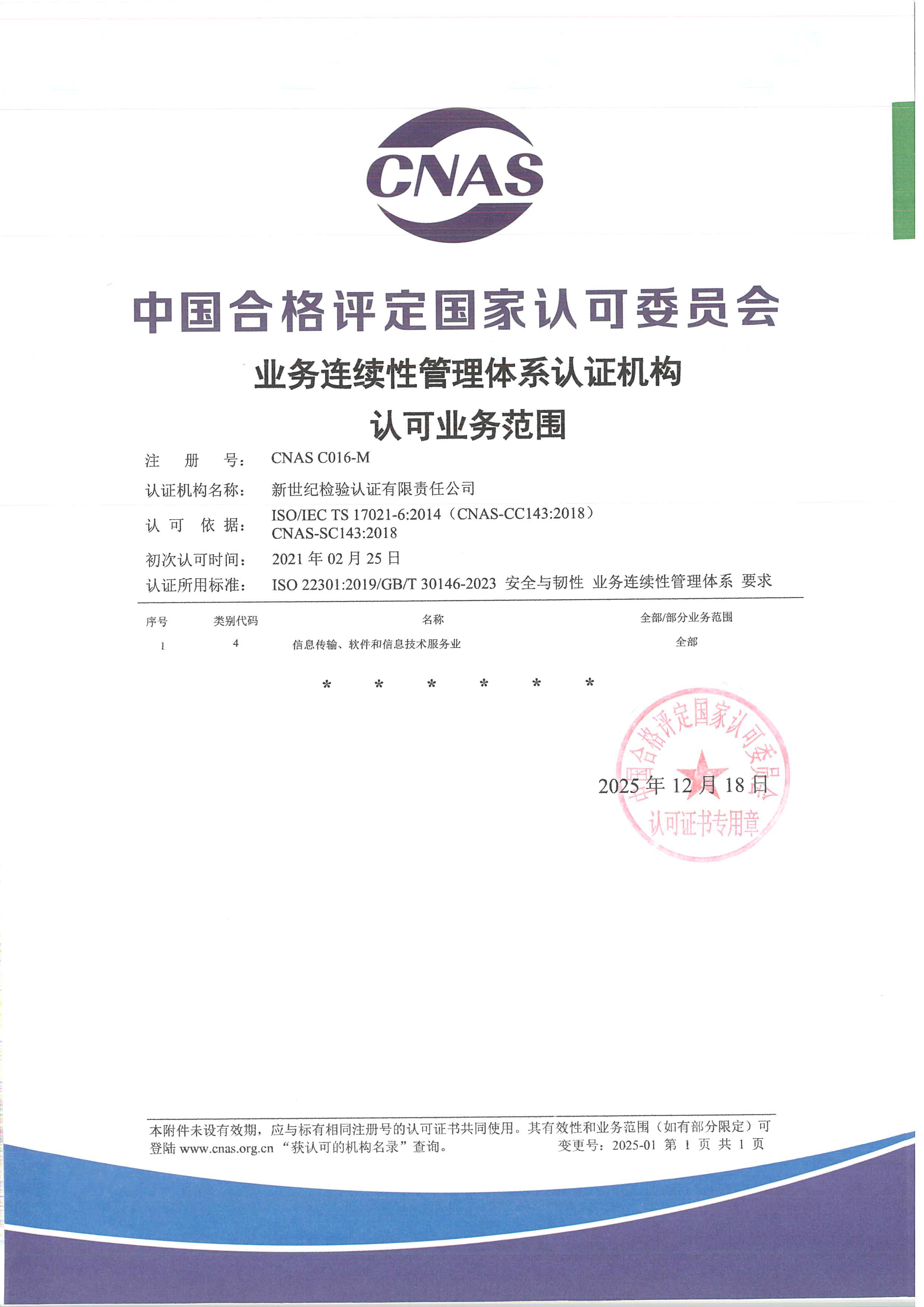 業(yè)務(wù)連續(xù)性管理體系認(rèn)證機(jī)構(gòu)認(rèn)可證書 |