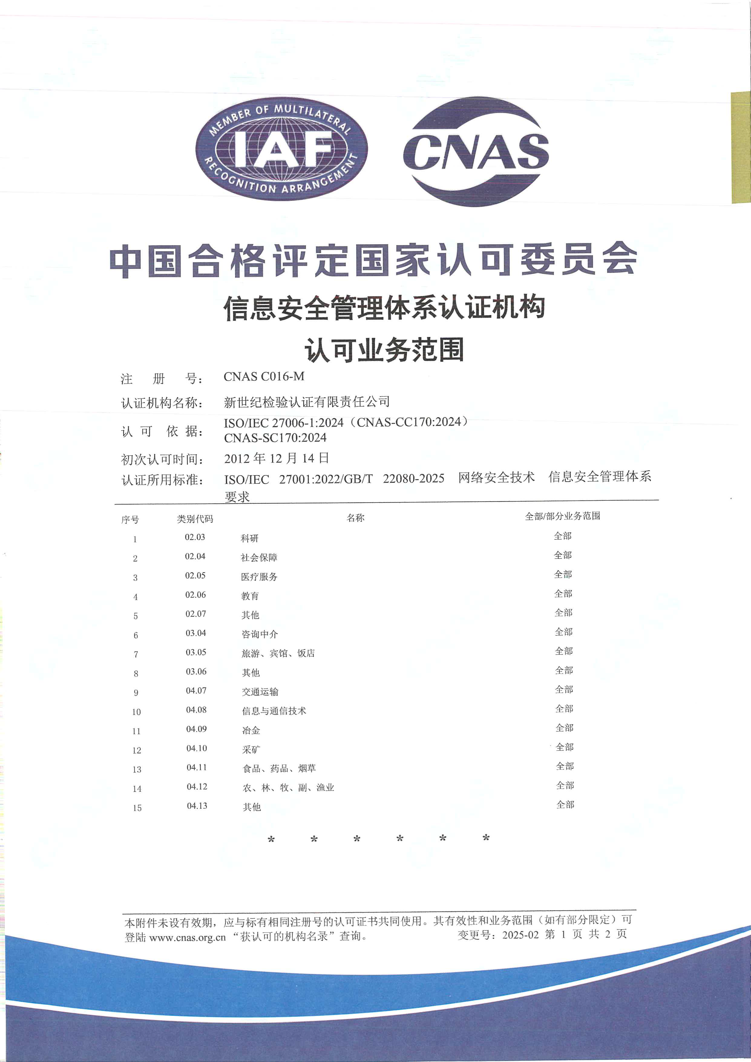 信息安全管理體系認(rèn)證機(jī)構(gòu)認(rèn)可證書 |