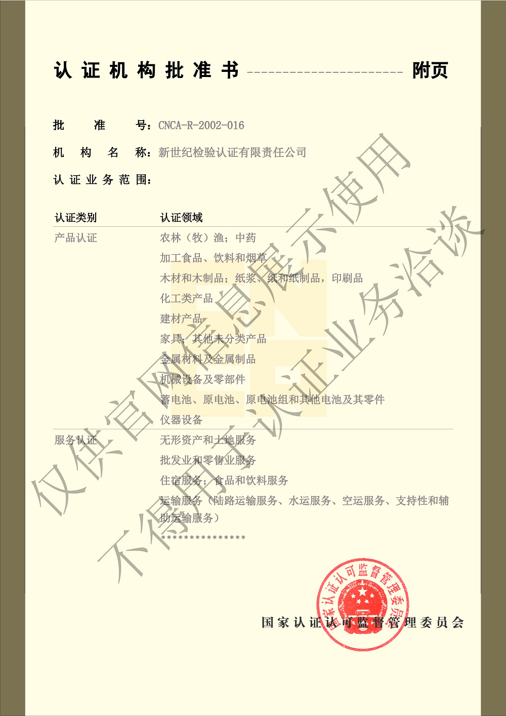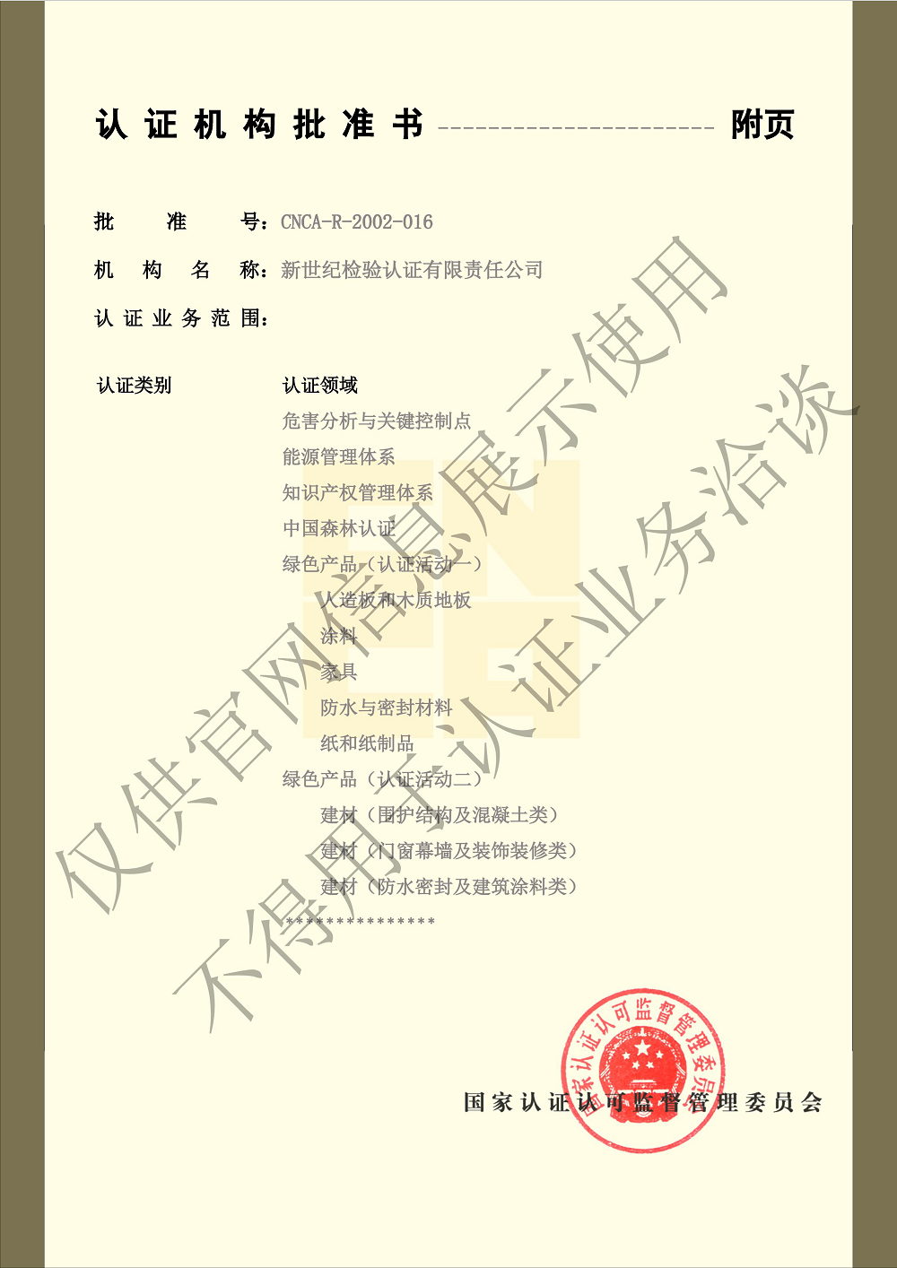 產(chǎn)品認(rèn)證機(jī)構(gòu)認(rèn)可證書 |