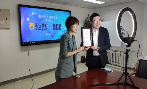 “云頒證”儀式,BCC為蘇寧易購頒發(fā)知識產(chǎn)權(quán)管理體系認(rèn)證證書!